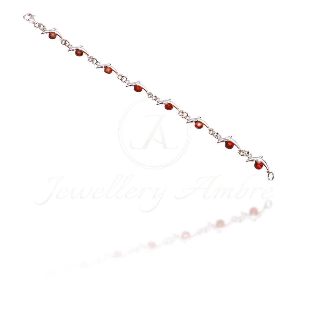 Baltic Amber Dolphins Bracelet in Sterling Silver
