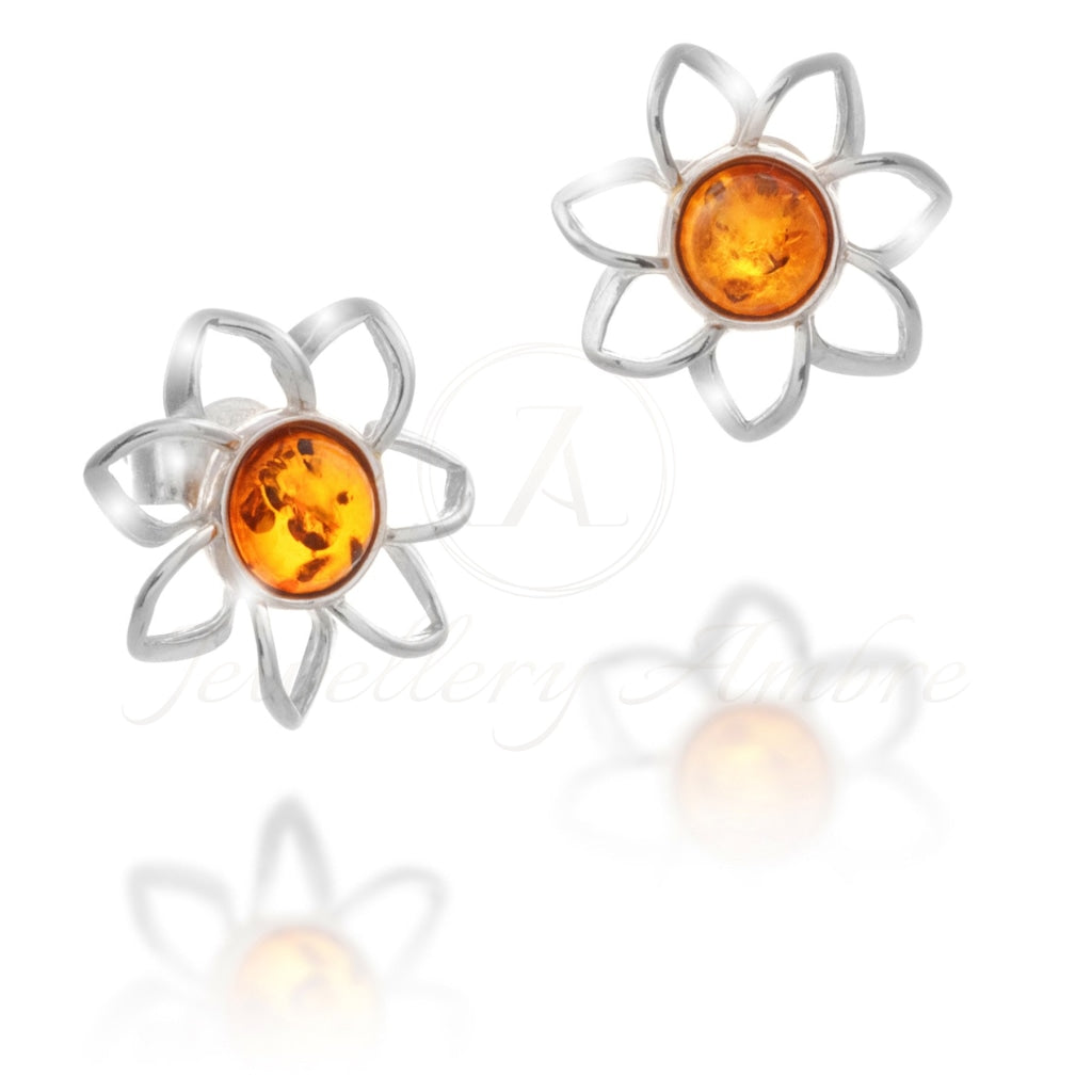 Amber Flower Studs In Sterling Silver Earrings