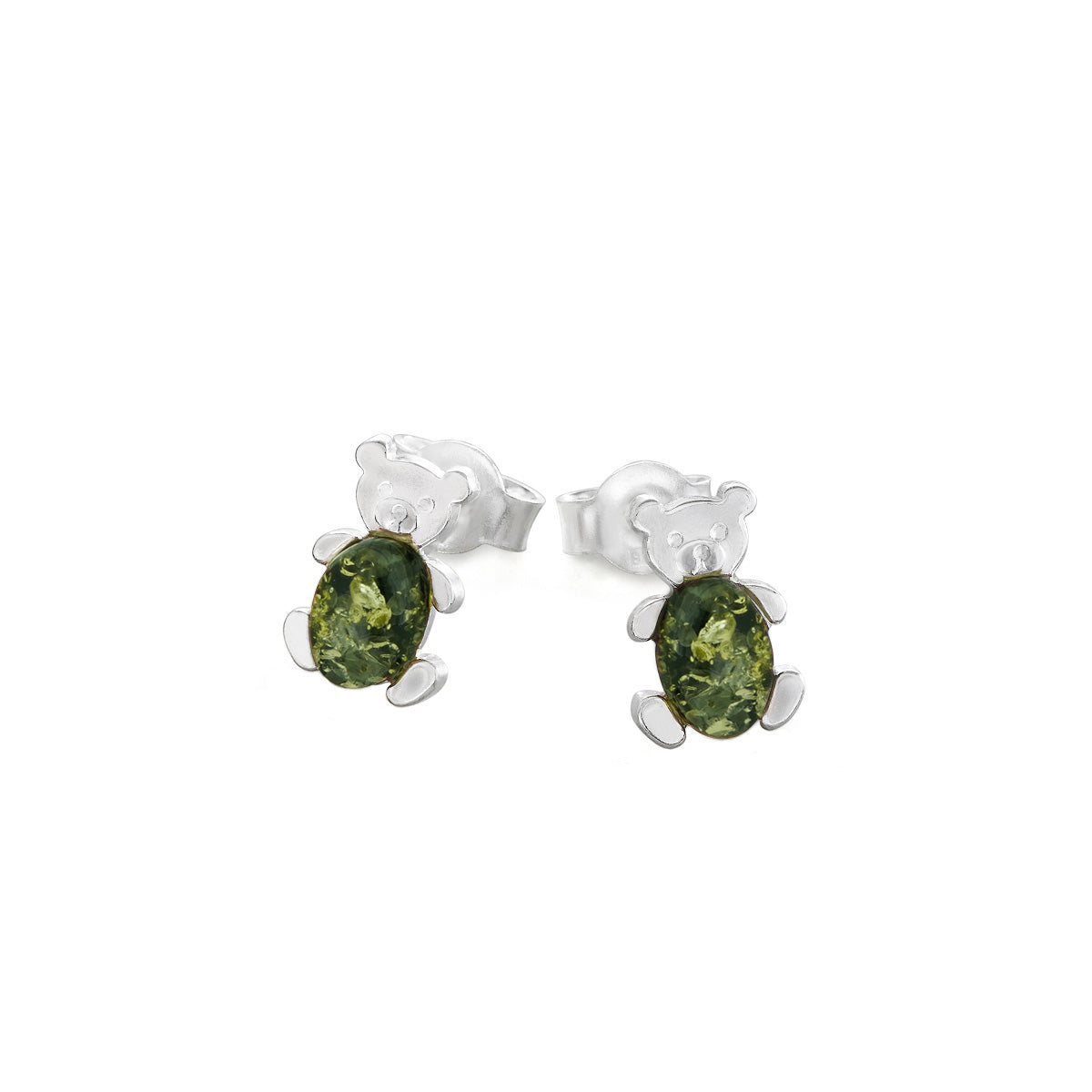 Amber Teddy Bear Studs in Sterling Silver