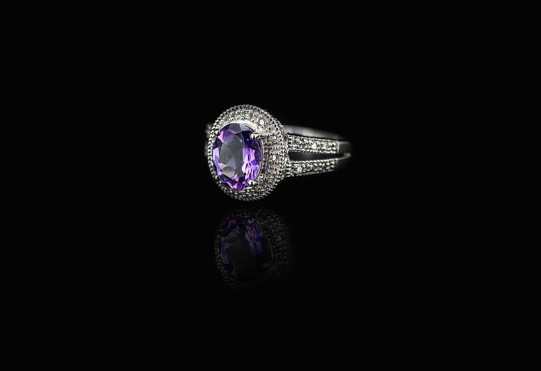 10K White Gold Amethyst & Diamond Cluster Ring