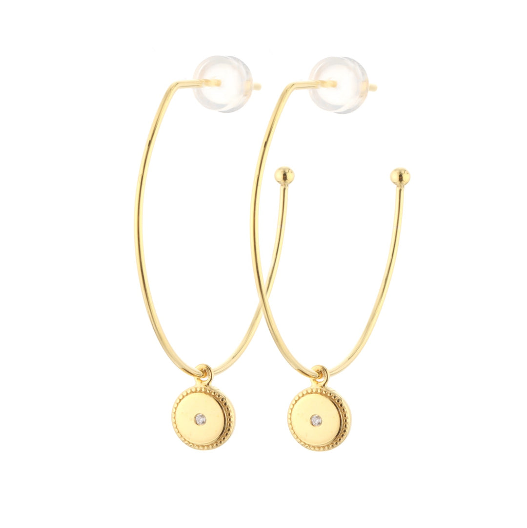Gold Hoop Earrings with Diamonds - Round