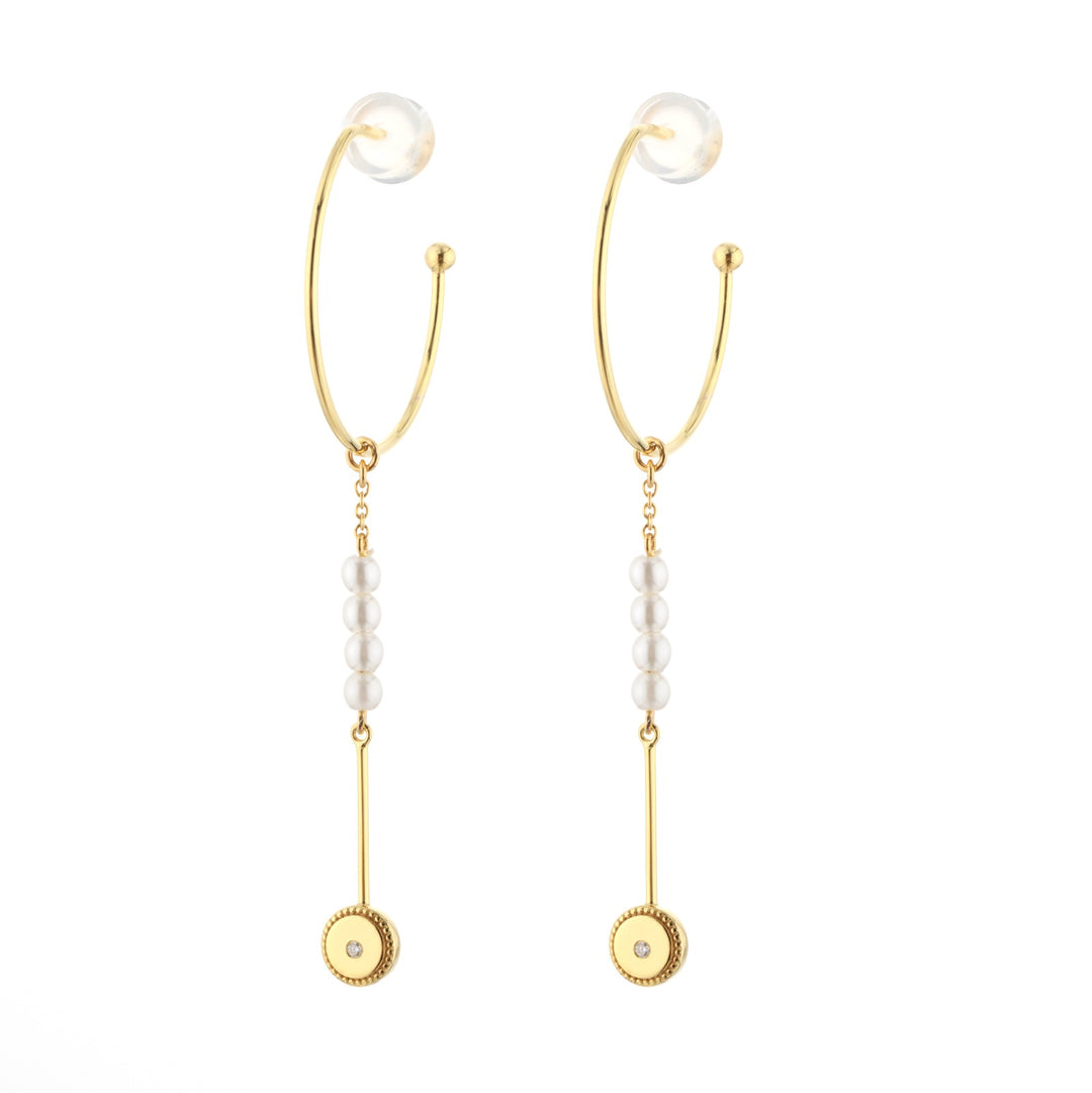 Gold Hoop Earrings with Pearls & Diamonds - Round
