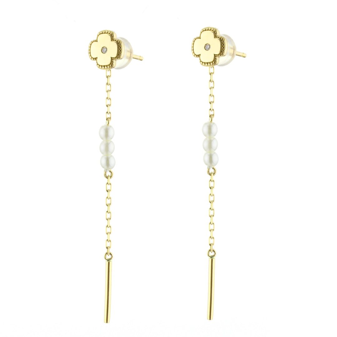 Gold Dangle Earrings with Pearls & Diamonds - Flower
