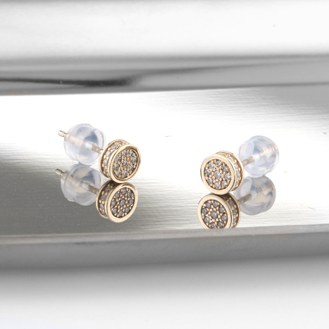 Gold Studs Earrings with Diamonds - Round