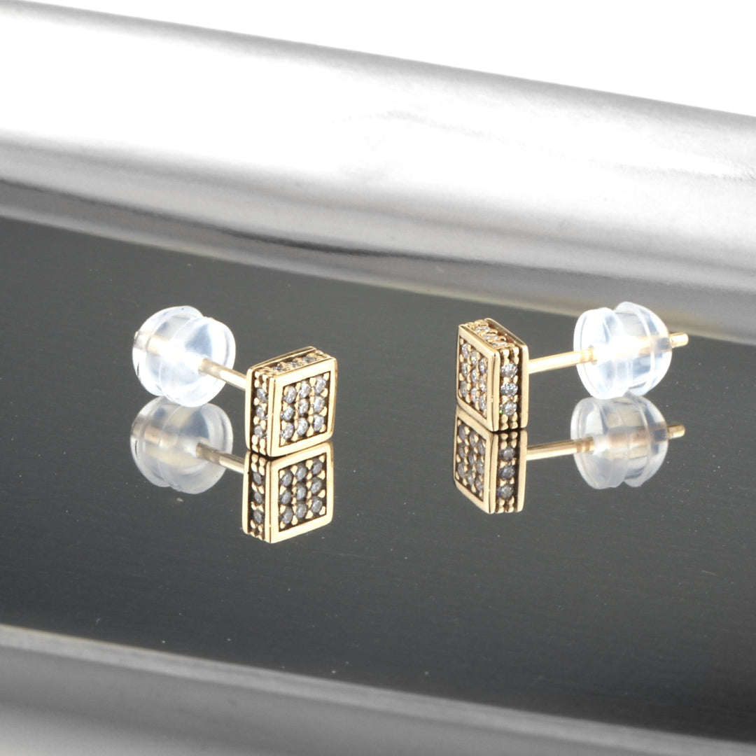 Gold Studs Earrings with Diamonds - Square