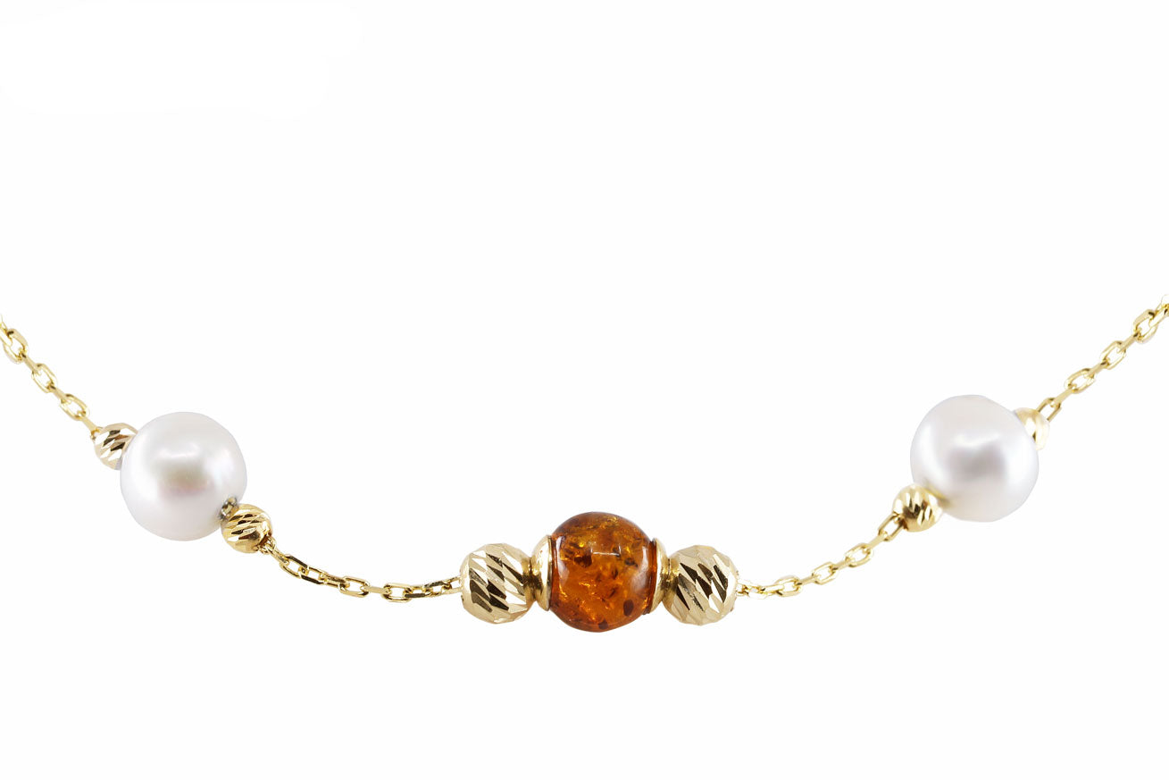 Bracelet with Amber and White Pearls in 14 karat Gold