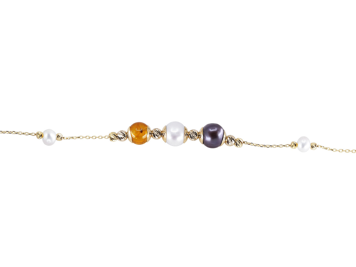 Bracelet with Amber and Black and White Pearls in 14 karat Gold