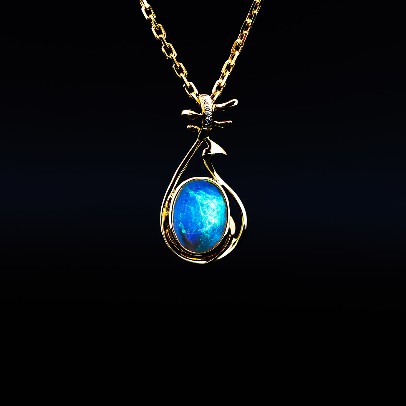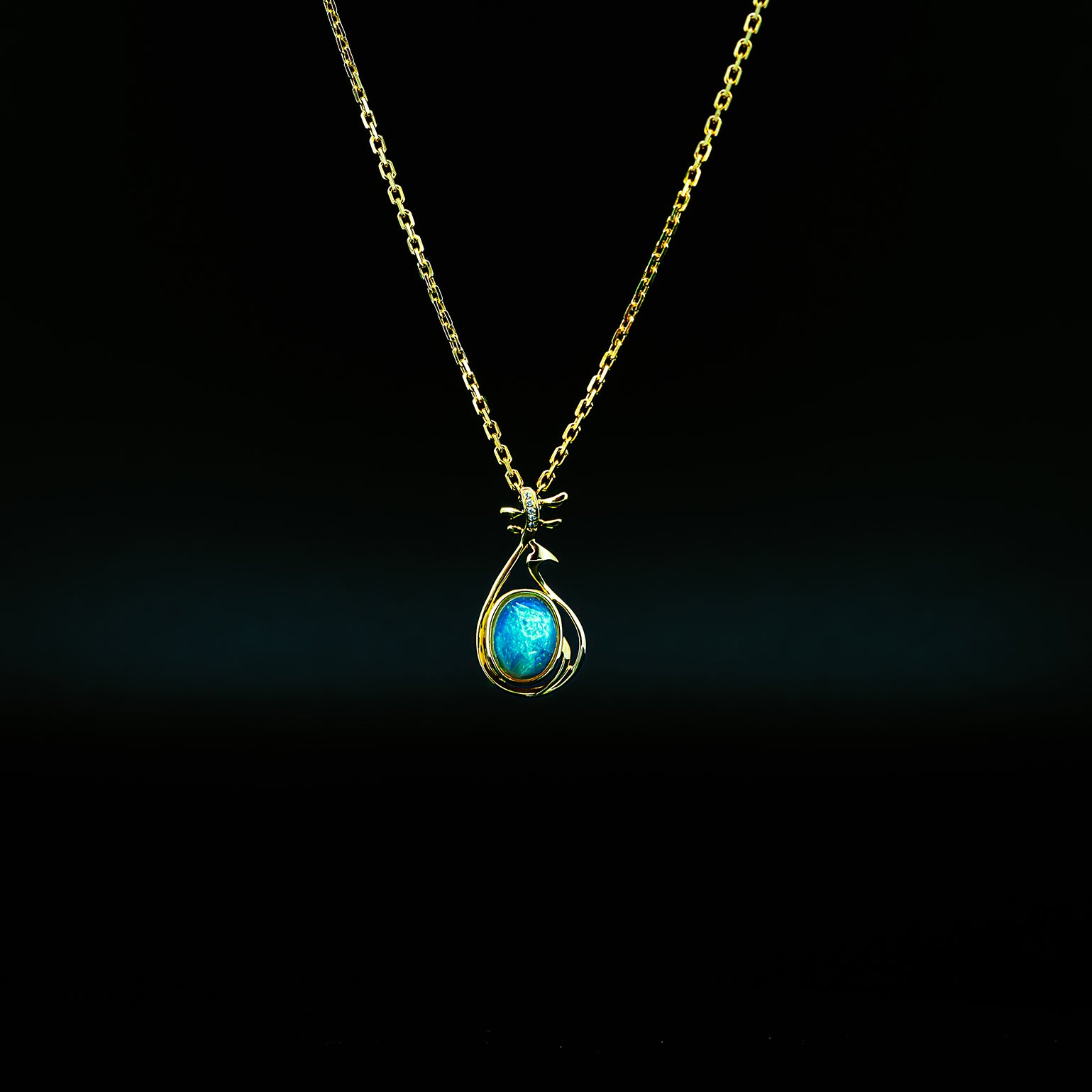 Opal Crystal Pendant in 14ct Gold with diamonds