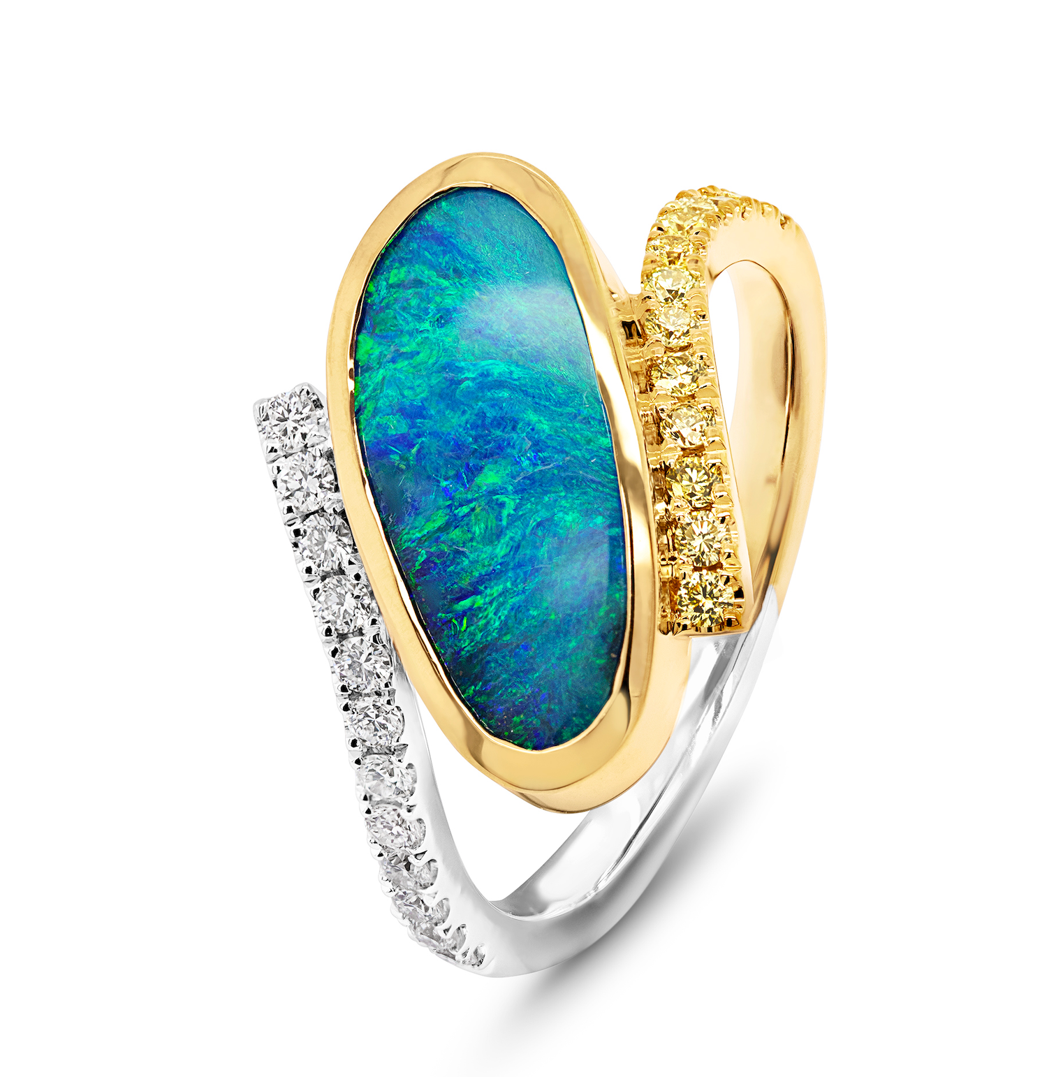Boulder Opal with Diamonds Gold Ring