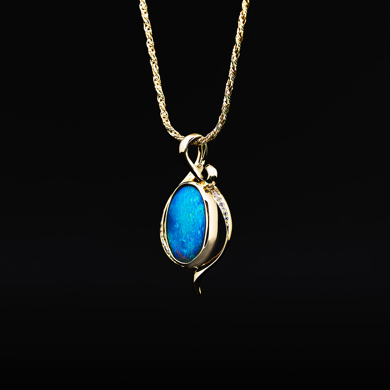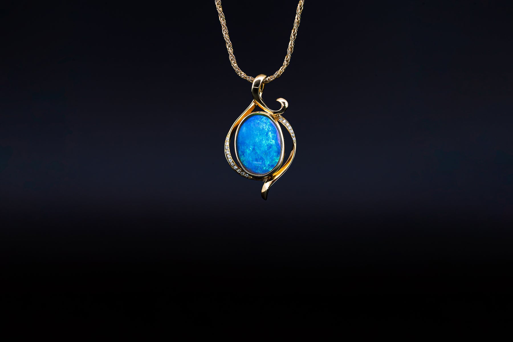 Opal Crystal Pendant in 14ct Gold with diamonds