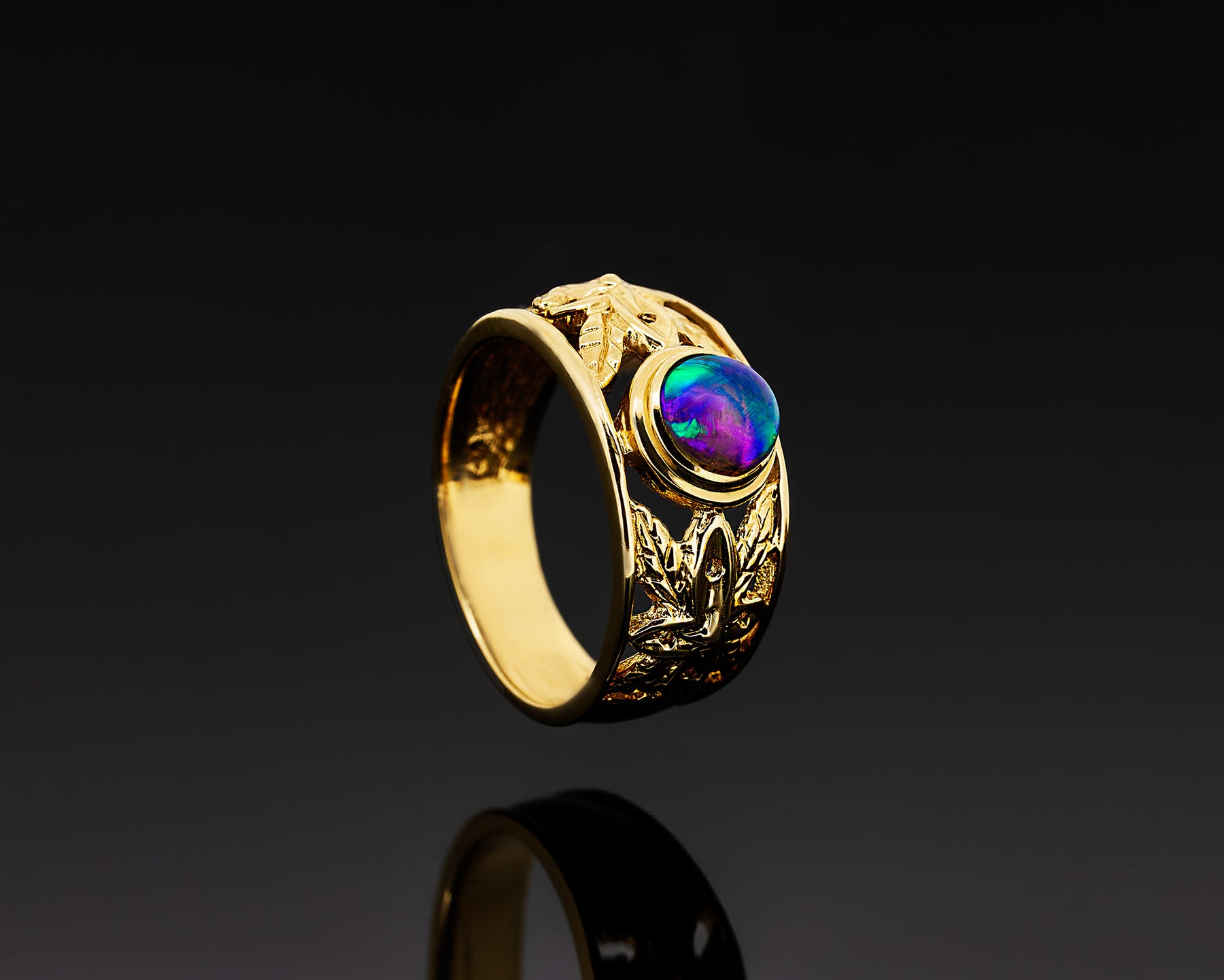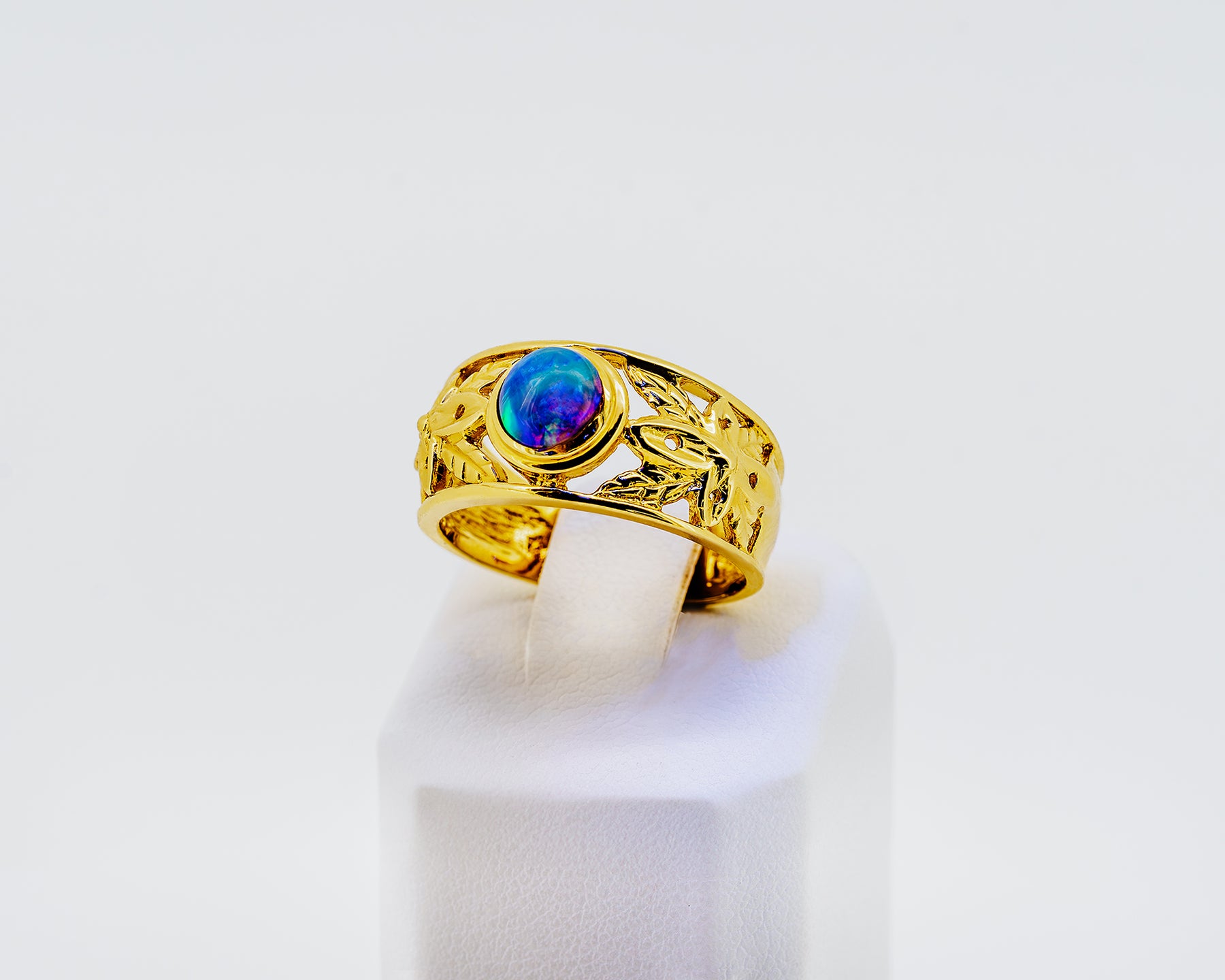 Beautiful and Colourful Round Opal Ring set in 18ct Gold.