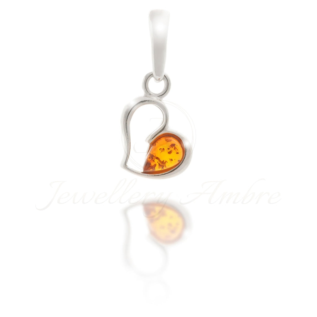 Amber Heart Pendant in Sterling Silver