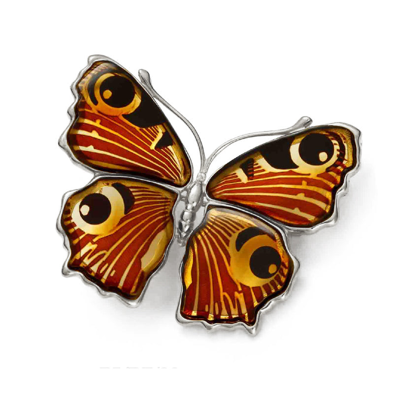 925 Sterling Silver Amber Peacock Butterfly Pendant