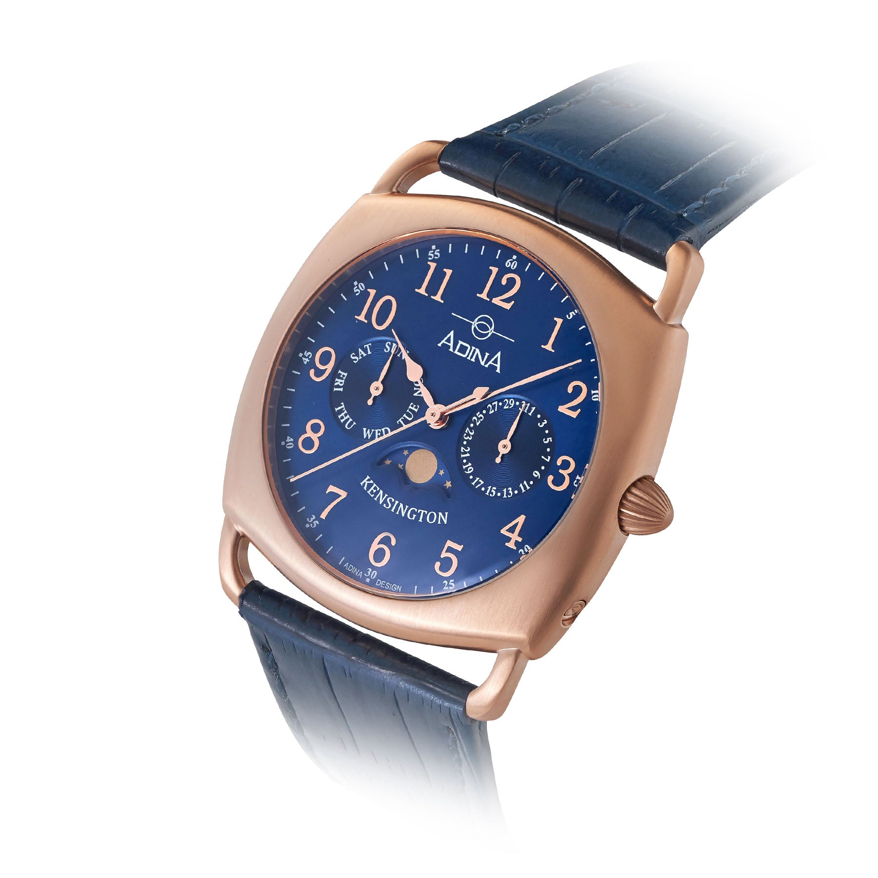 Adina Kensington Moon Phase Watch RW19 R6FS , is part of the Adina Lunar Heritage Series, a modern interpretation of a vintage moon phase watch, impeccably crafted by the renowned Australian watchmaking house, Adina Watches, with over five decades of expertise, nestled in the heart of Brisbane. The 39mm vintage re-issue pays homage to classic design elements while incorporating modern features for a timepiece that transcends eras, with each watch being built by hand.